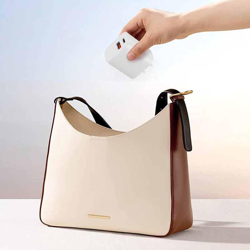 PD+QC3.0 DUAL PORTS: Equipped with two output ports (USB + Type-C), you can charge two devices simultaneously, saving you time and ensuring all your devices are powered up.